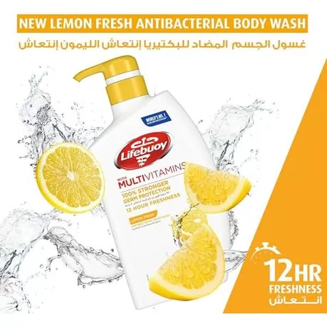 Experience the NEW multivitamin formula of Lifebuoy antibacterial body wash infused with refreshing lemon extract to remove odor, providing a fresh citrus scent and 12 hours of lasting freshness, it gives you and your family 100% stronger germ protection.* Suitable for all skin types, including sensitive skin, this powerful antibacterial, skin cleaning wash improves everyday hygiene with each use. This detox blend reaches deeply into pores to tackle unwanted bacteria and help with odor prevention – all without disrupting your natural moisture balance. It’s been dermatologically tested to ensure it’s safe for you and your loved ones, so even kids can use this gentle yet ultra-effective bath wash. Watch as this sanitising body wash transforms into a rich foam under running water, instantly making you feel fresh and clean.